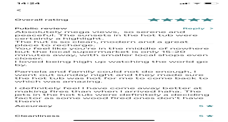 We are listed in Airbnb, for our most up to date reviews, please find us on there. We are 'Super-host' and a guest favorite.